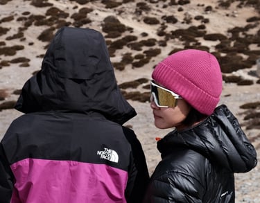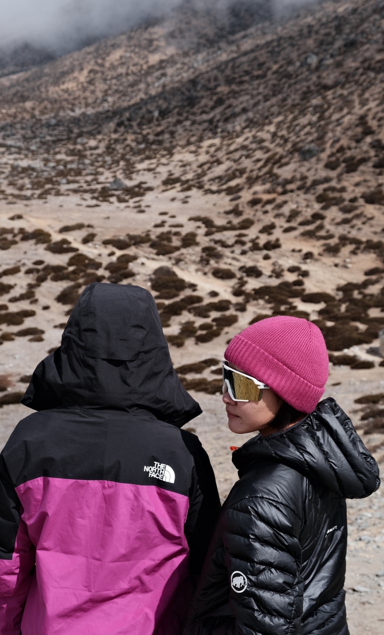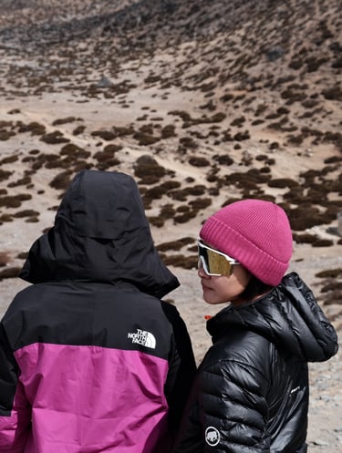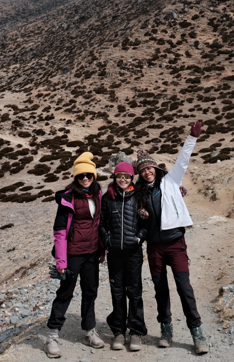 Filming silly little moments with my friends — like sliding down frozen paths, pretending to model on mountain rocks, and doing dramatic slow-mos under the prayer flags