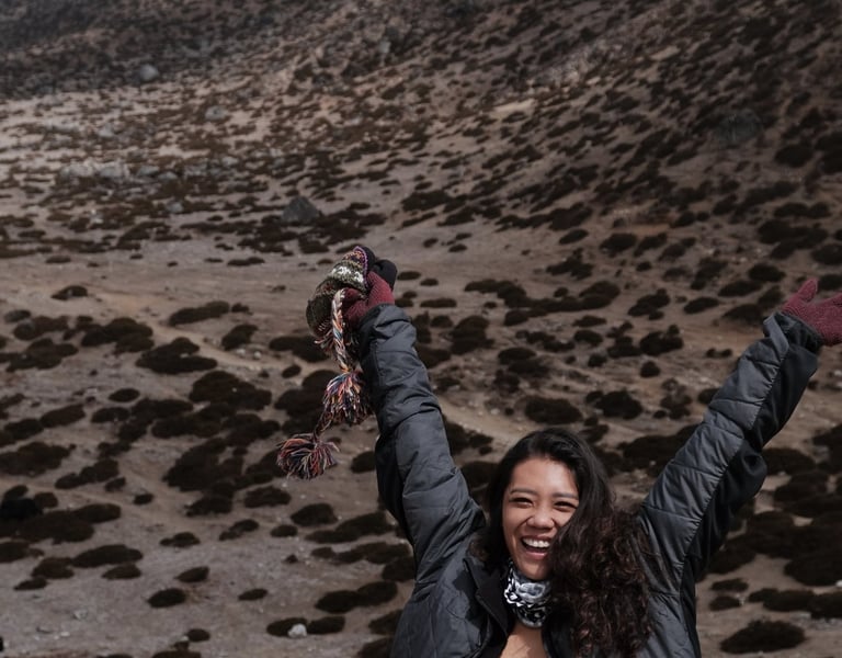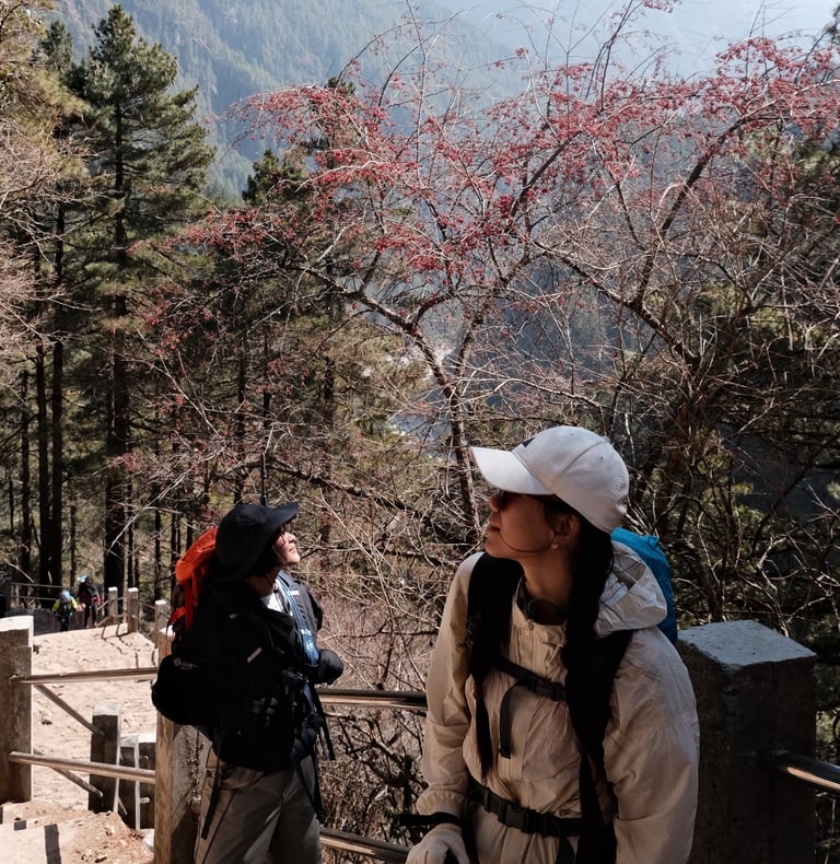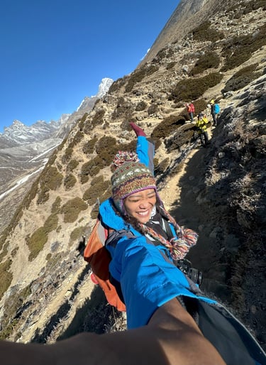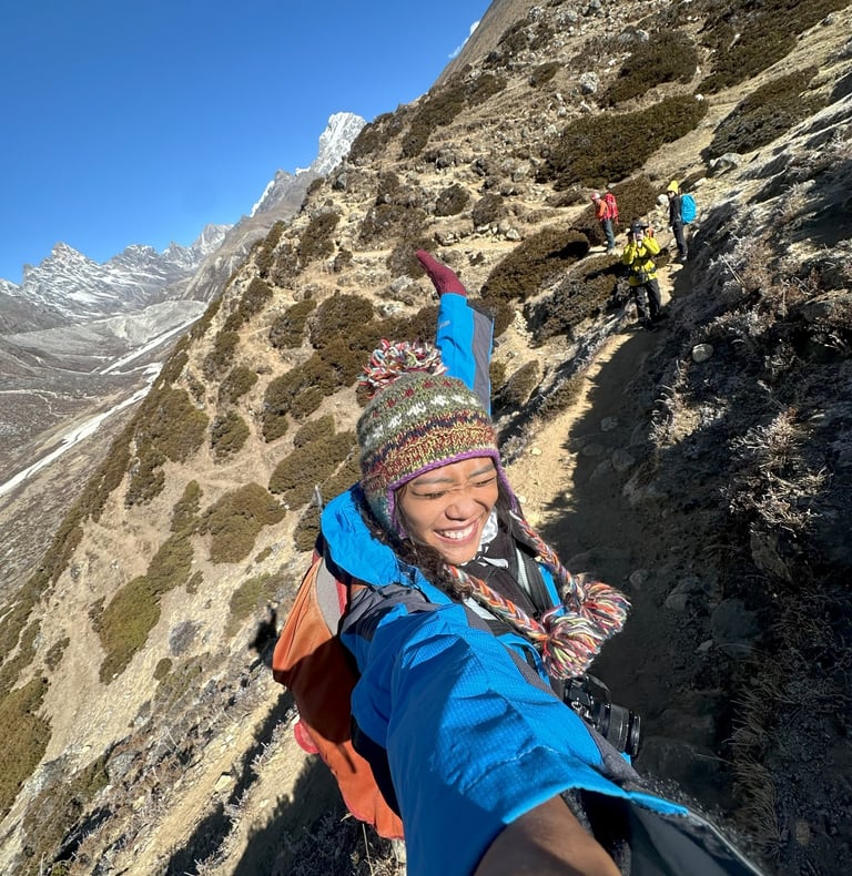 That first magical glimpse of Mount Everest, peeking through the clouds — I gasped and froze, then took 300 photos in 10 minutes 😆